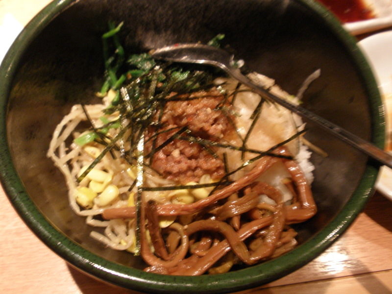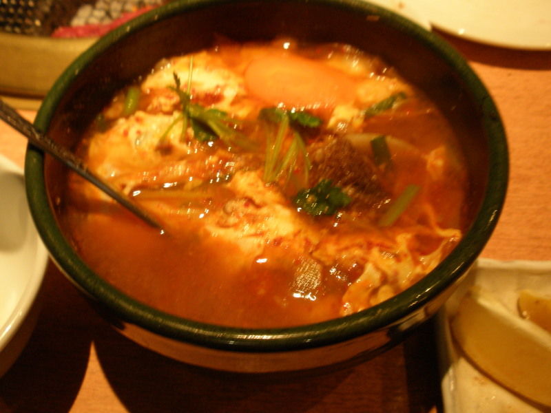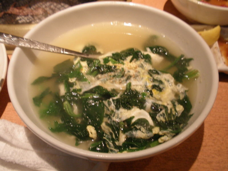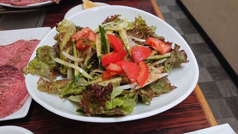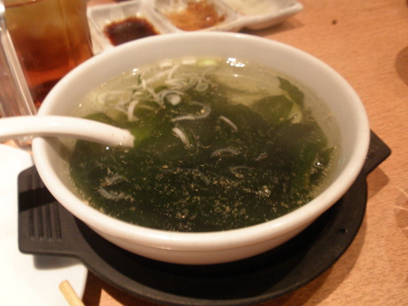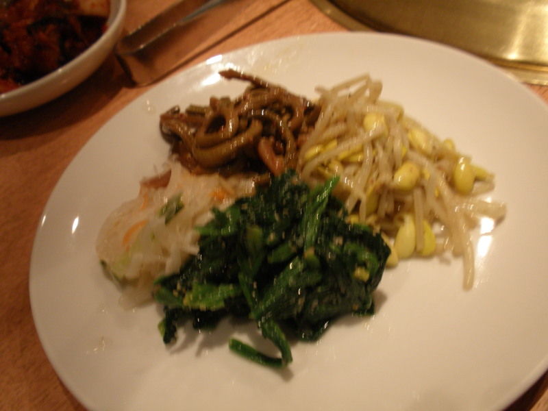 まずはサラダ、ナムル、キムチ、スープを食べる